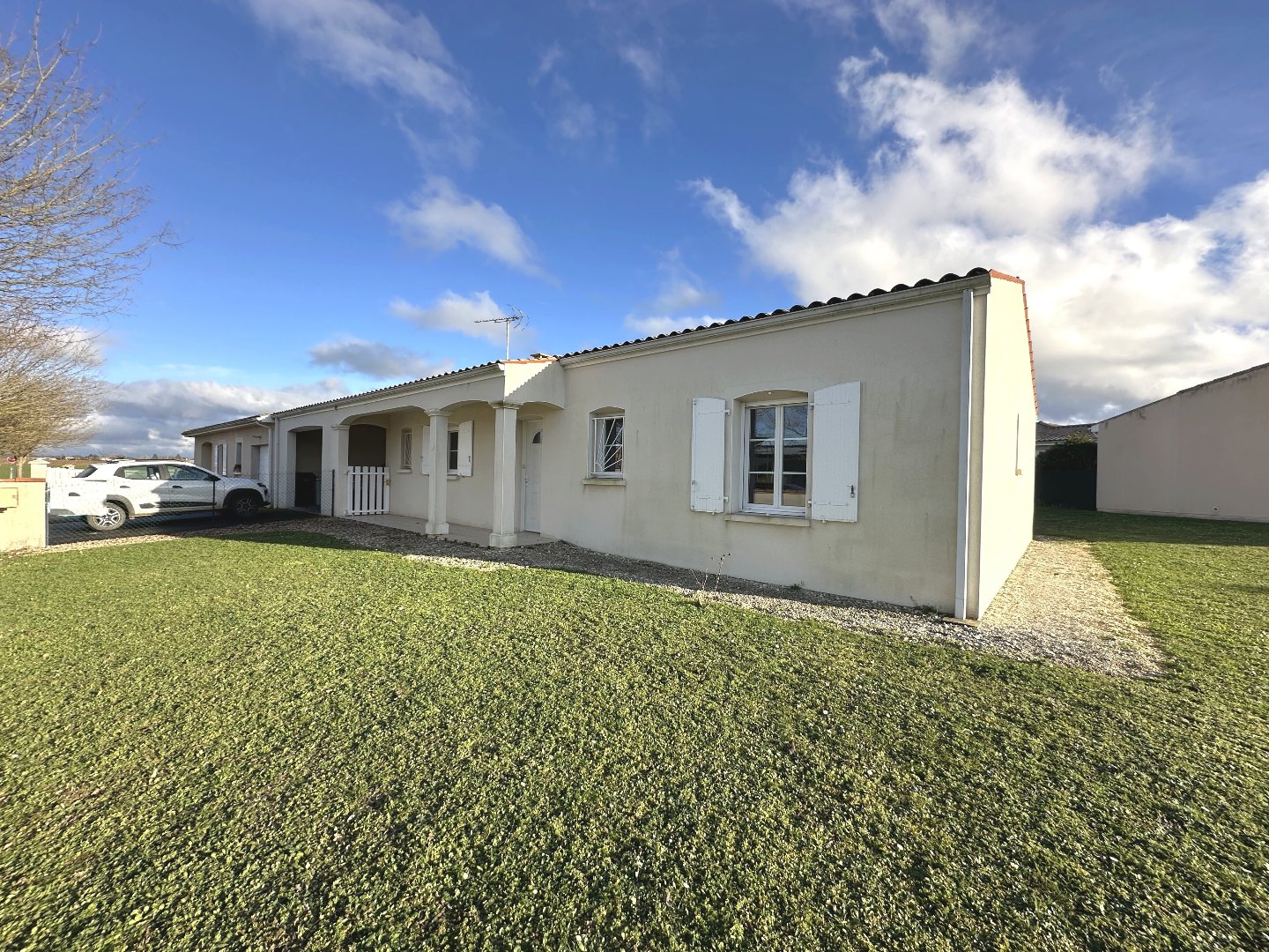 A Gémozac, dans lotissement calme à proximité de tous les commerces, maison de 2008 de plain-pied de 96m² comprenant une entrée, une cuisine aménagée ouverte sur séjour, un cellier, trois chambres avec placards, salle de bains avec douche et WC indépendant. Chauffage au sol. Carport de 25m² et jardin arboré et clos de plus de 800m². Idéal pour famille ou investissement locatif, à saisir!